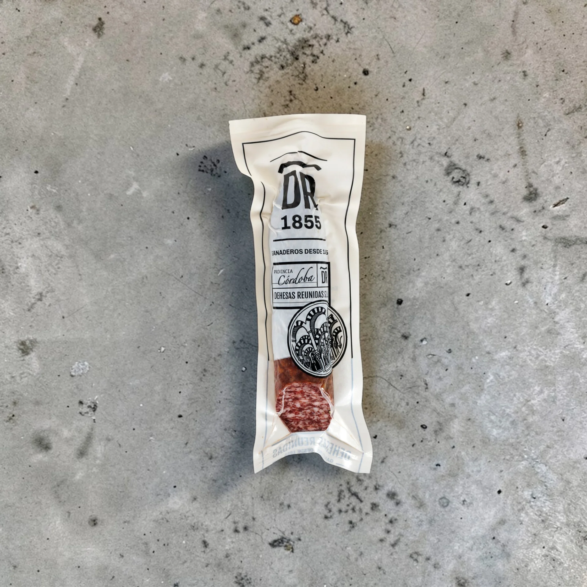 El Salchichón de Bellota 100% Ibérico de DR1855 es una joya de suavidad y aroma. Elaborado con magros nobles de cerdos de pura raza alimentados con bellota, su aliño tradicional a base de pimienta negra en grano y especias finas resalta la dulzura natural de la carne curada. Textura untuosa, sabor delicado y una fragancia inolvidable.
